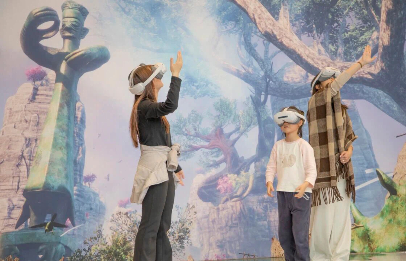 يستمتع الزوار بتجربة الواقع الافتراضي في المعرض الذي يتمحور حول موضوع "سانشينغدوي". الصور مقدمة من الجهة المنظمة.