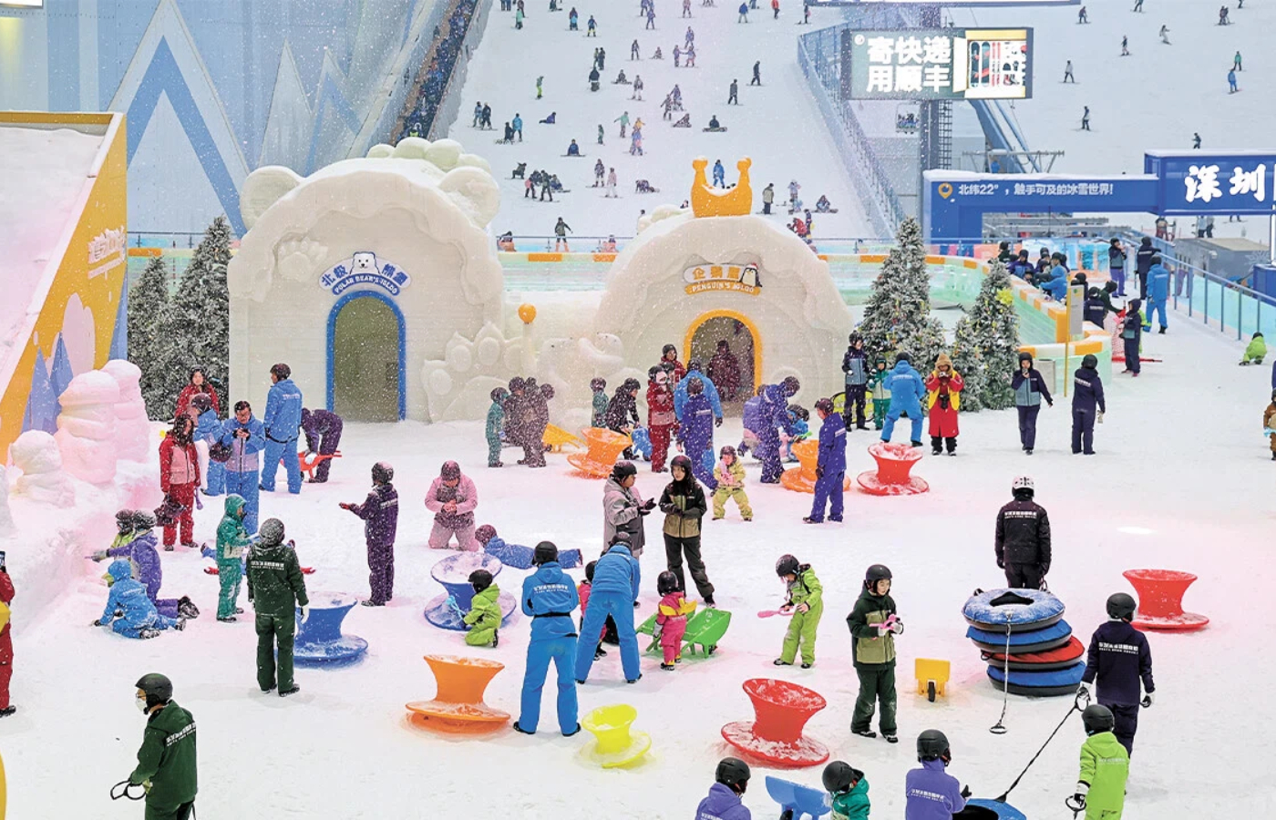 أطفال يلعبون بالثلج في عالم تشيانهاي الثلجي خلال عطلة تشينغمينغ. صورة من صحيفة منطقة شنتشن الخاصة اليومية.